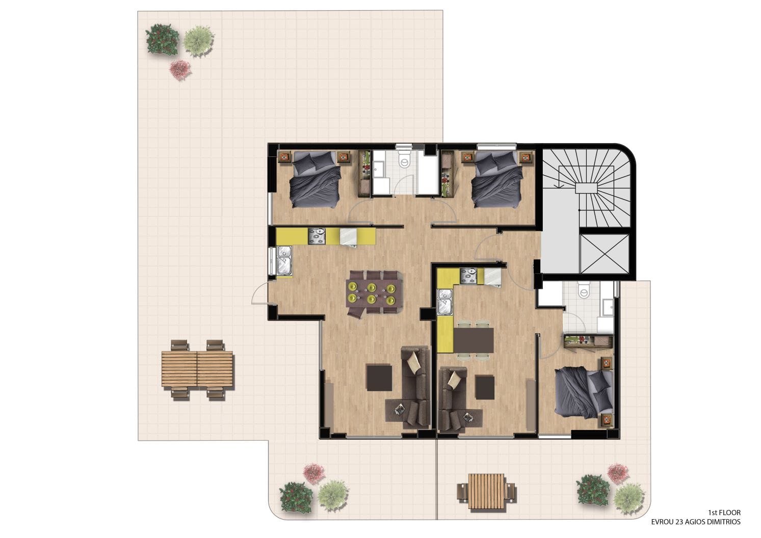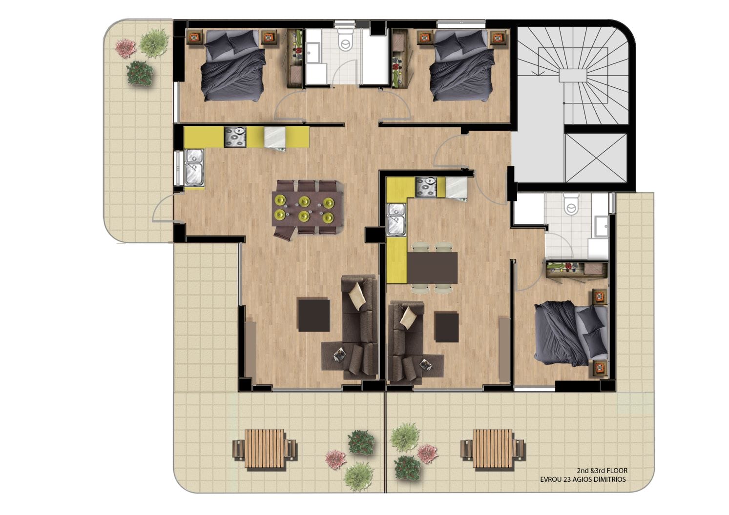Το κτίριο βρίσκεται στο νότιο τμήμα της Αθήνας και συγκεκριμένα στον Άγιο Δημήτριο. Αποτελείται από επτά διαμερίσματα με δύο υπνοδωμάτια και τρία διαμερίσματα με ένα υπνοδωμάτιο.