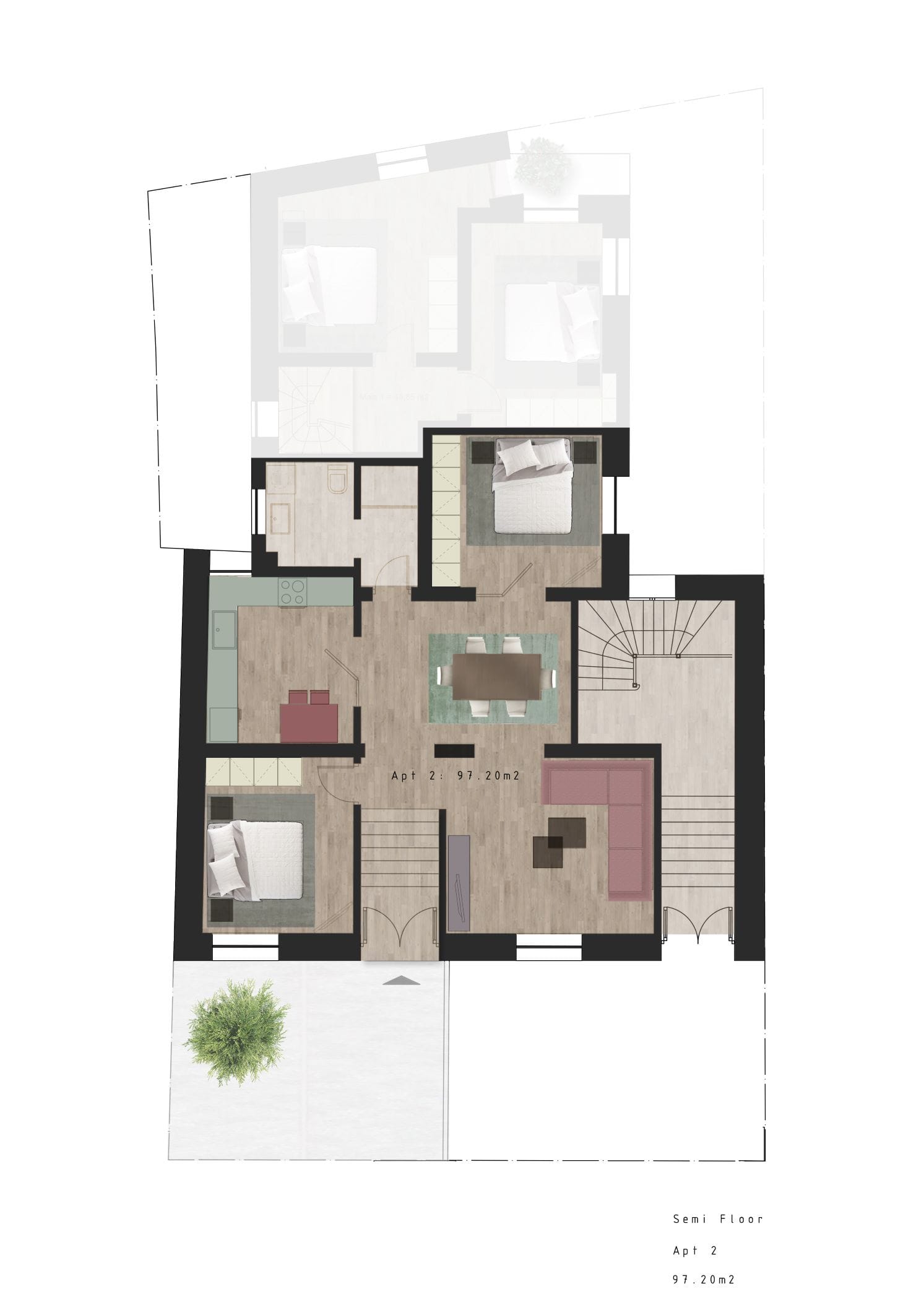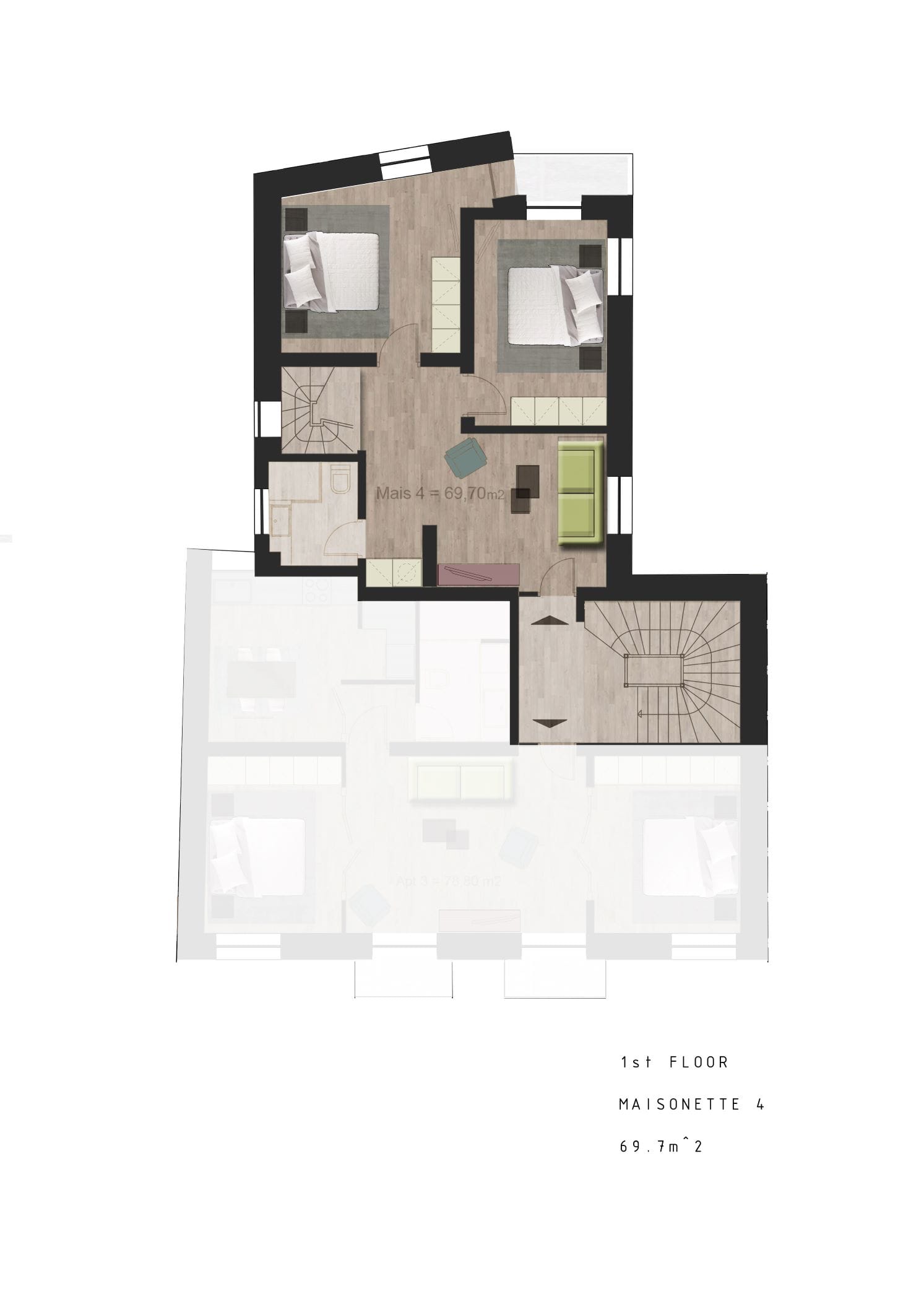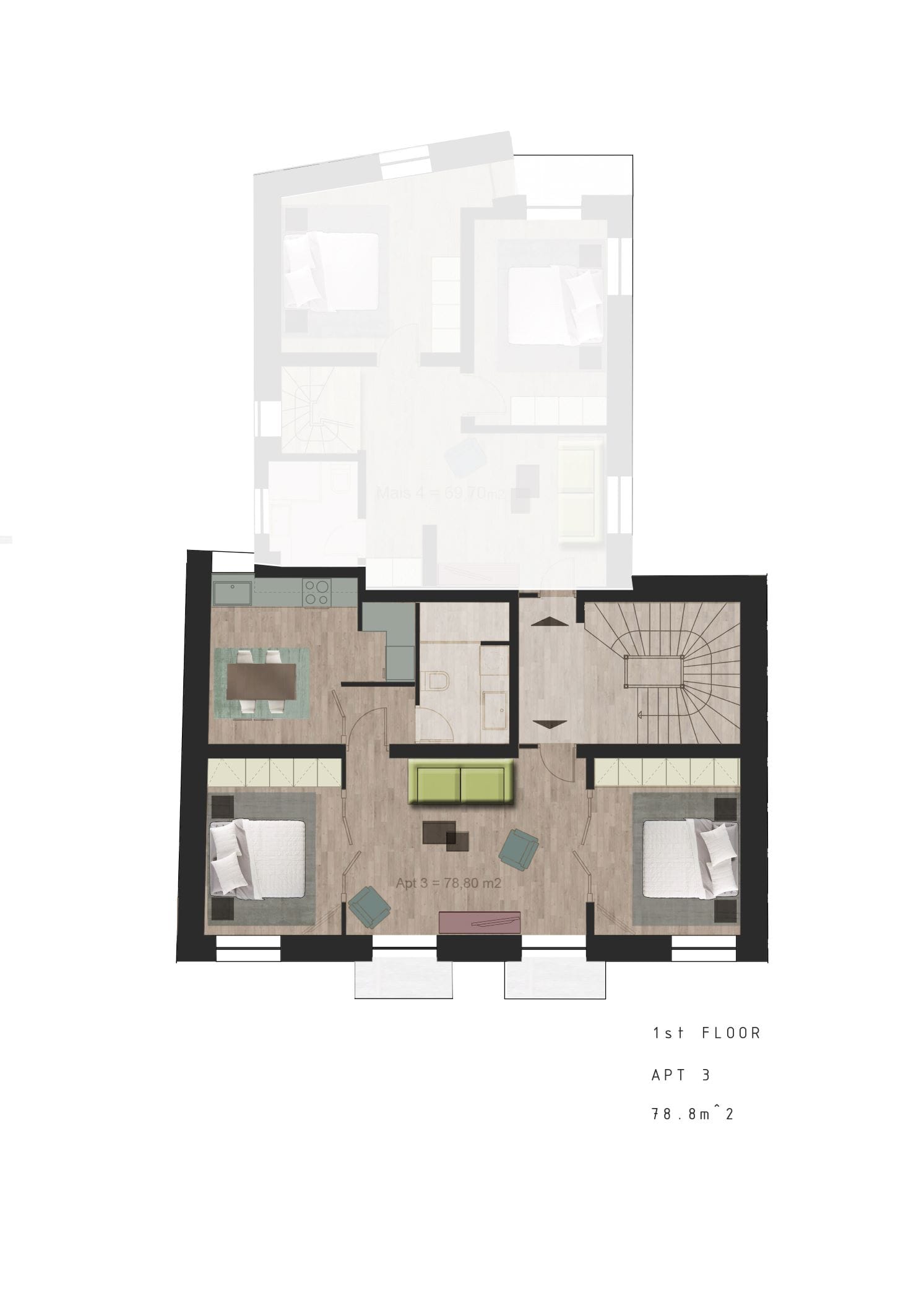 Το έργο βρίσκεται στο κέντρο της Αθήνας στα Πατήσια. Το κτίριο αποτελείται από δύο μεζονέτες και τρία διαμερίσματα των δύο υπνοδωματίων.