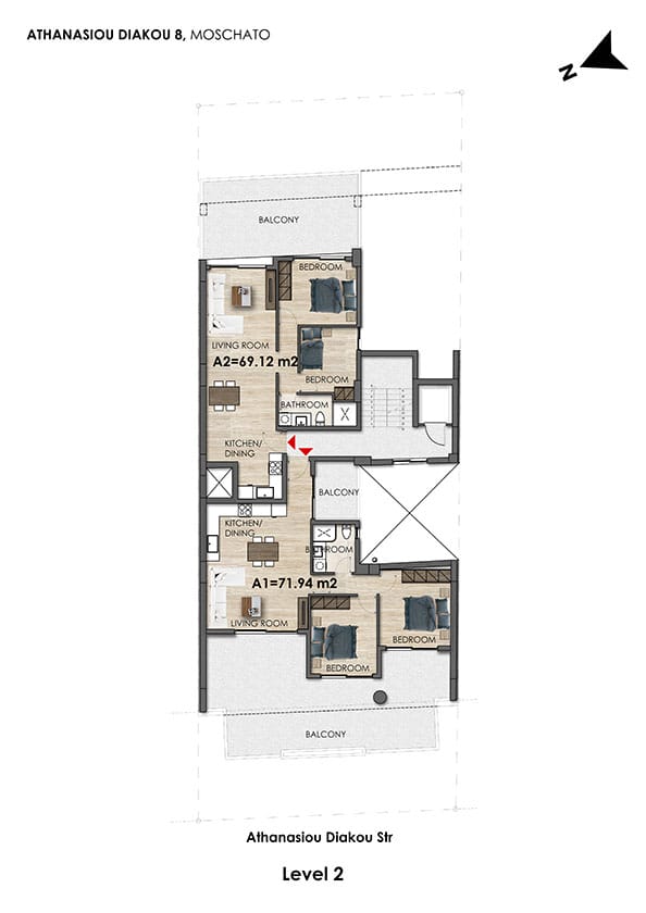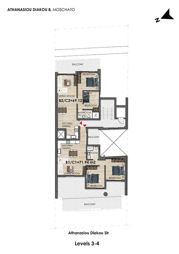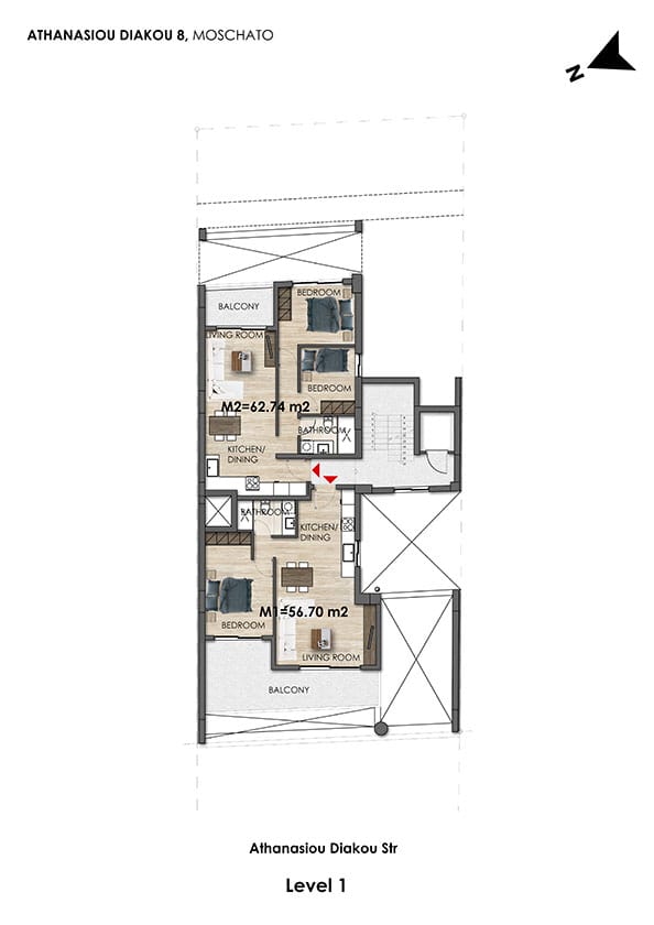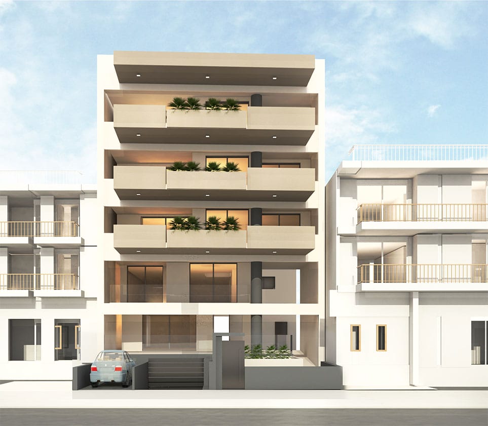 The building is located at a prime position in the city of Athens, extremely close to Piraeus and to the city’s center whilst simultaneously adjacent to the beautiful coastline at a location where there is low construction. Magnificent renovations, prominent buildings and charming gardens with serene landscapes are all within walking distance. The building rises to four floors, based on a minimalist design with specific emphasis placed on its features of horizontal axis and recesses in its assembly with shaded balconies for all seasons erected on the east and west side.