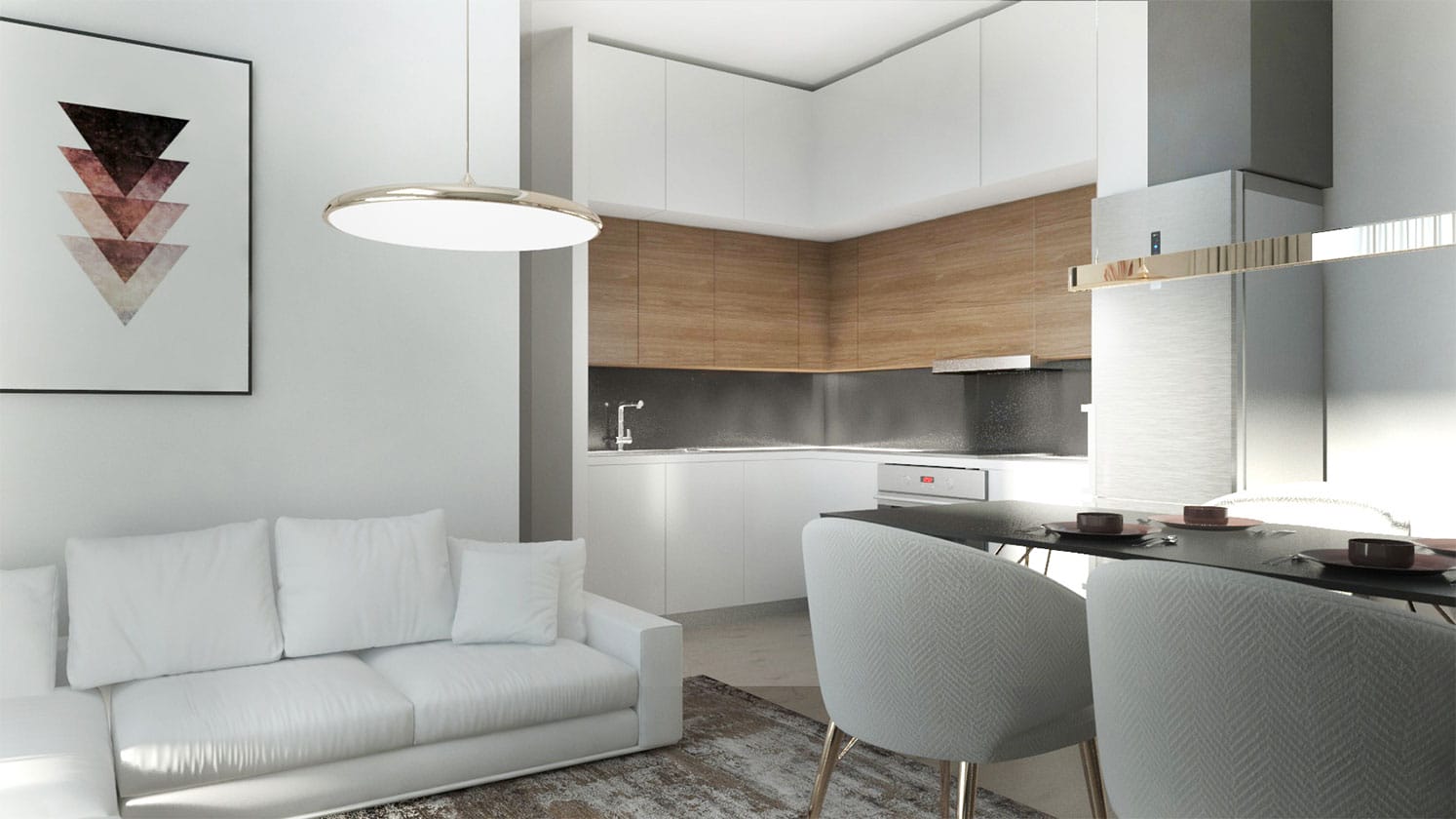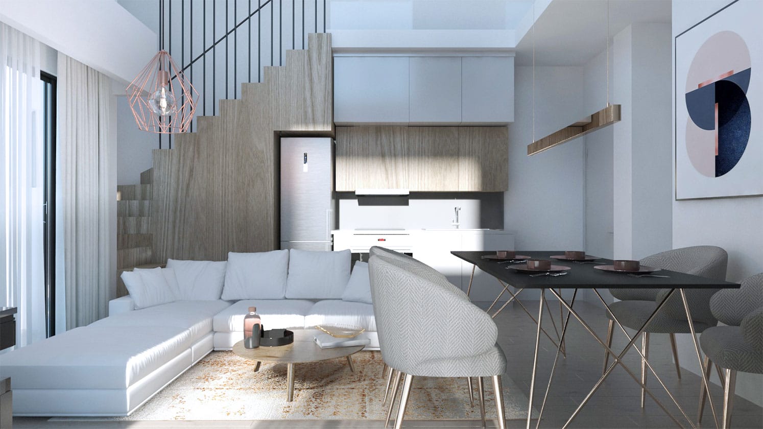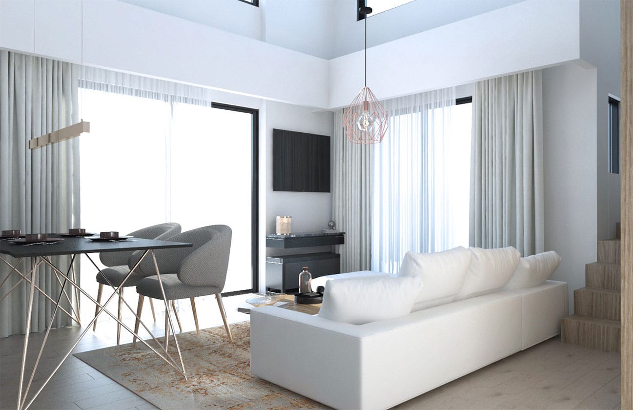 The building is located in the area of Alimos in the southern suburbs of Athens. It is close to the main roads yet distant enough to ensure peace and quiet. Three of the building’s facades have views on the beautiful sea, the serene mountains, and the neighboring recreational area.The manner of its design and expertise craftsmanship incorporated numerous balconies positioned in various directions providing discrete privacy and additional space for relaxation. The structure rises to five floors with a noticeable influence of modern architecture with white painted walls combined with wooden features displayed on the balconies and areas of the fence. It’s location provides ideal natural lighting throughout the year as its horizontal linear elements characterize its distinctive appearance. To assist nature in providing a cooler breeze during the summer months beautiful trees have been planted in the surrounding area in addition to displaying a serene and calm setting.