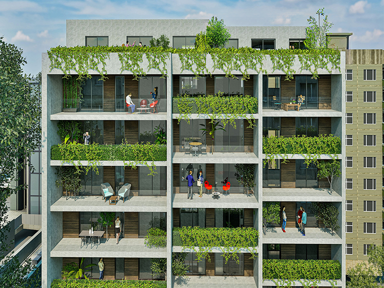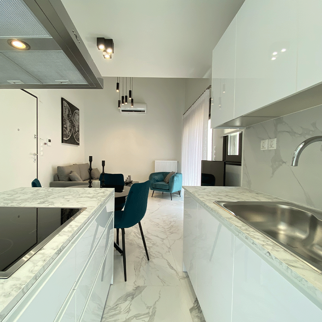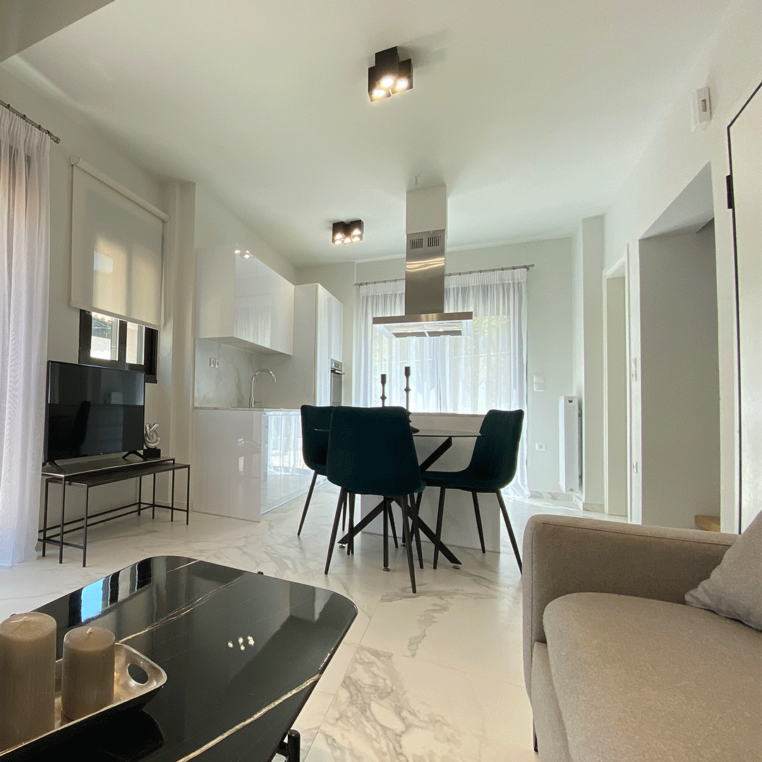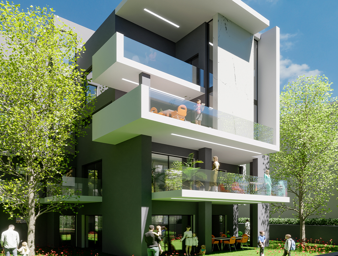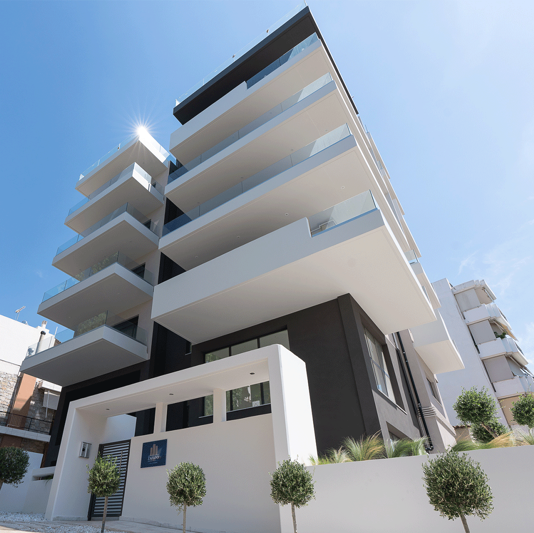 The project is located in the southern part of Athens close to the center of Glyfada in a quiet populated area. The building extends into five levels offering two maisonettes, eight double-bedroom apartments and one studio.