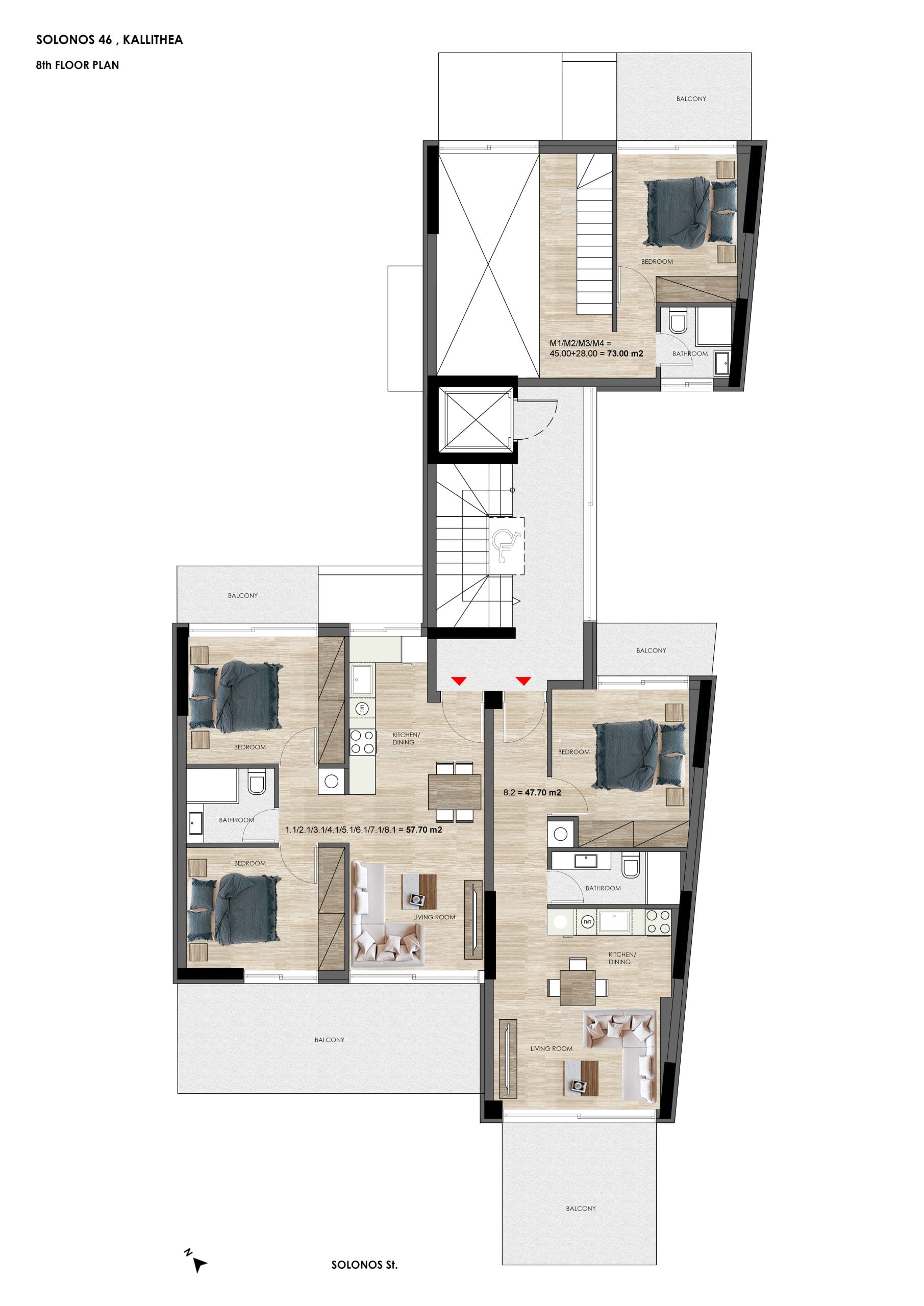 The building extends into eight levels offering sixteen (one&two) bedroom apartments and four (two) bedroom maisonettes.