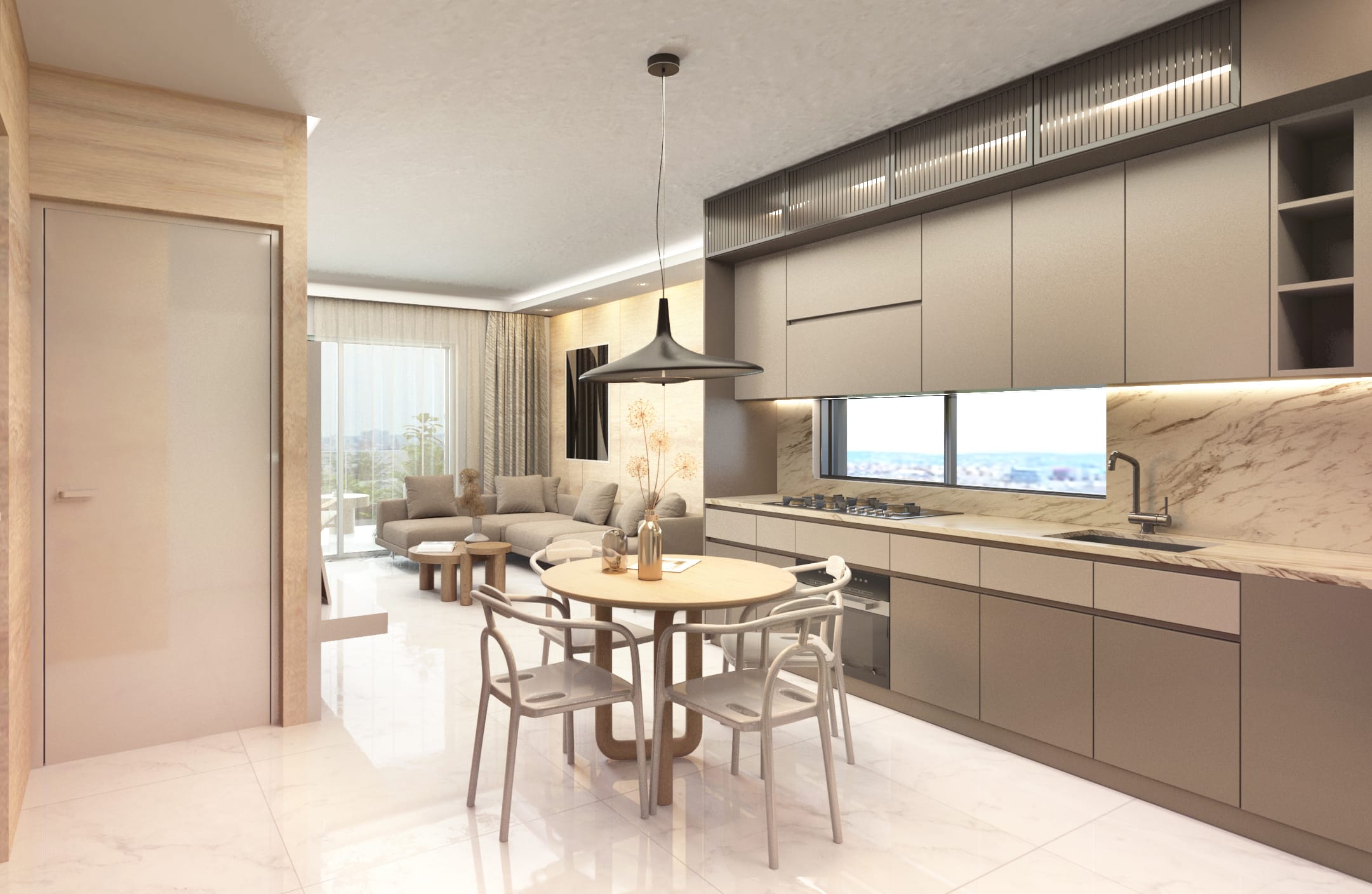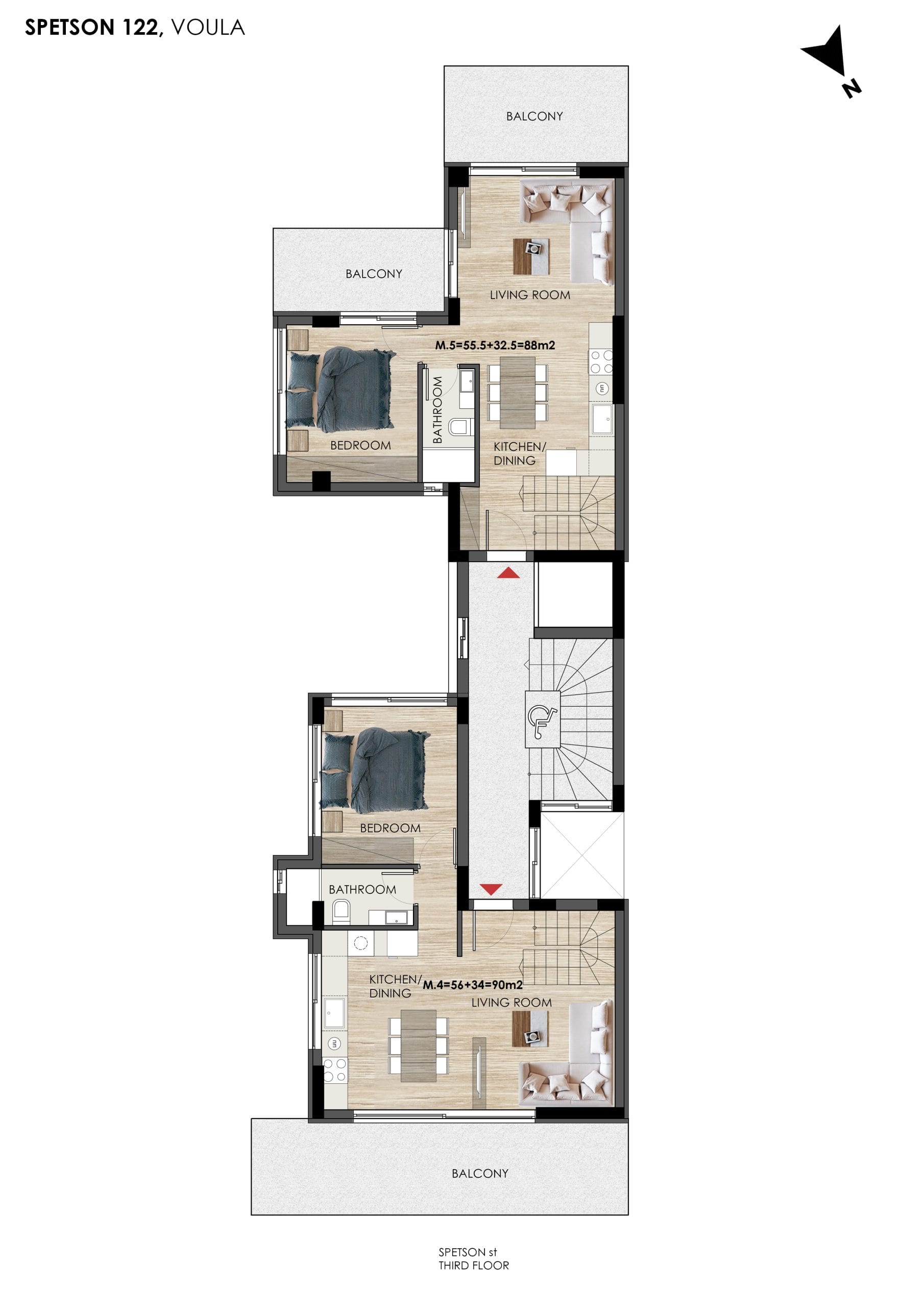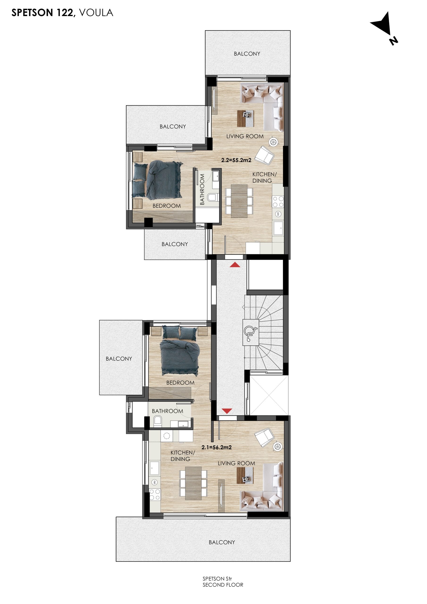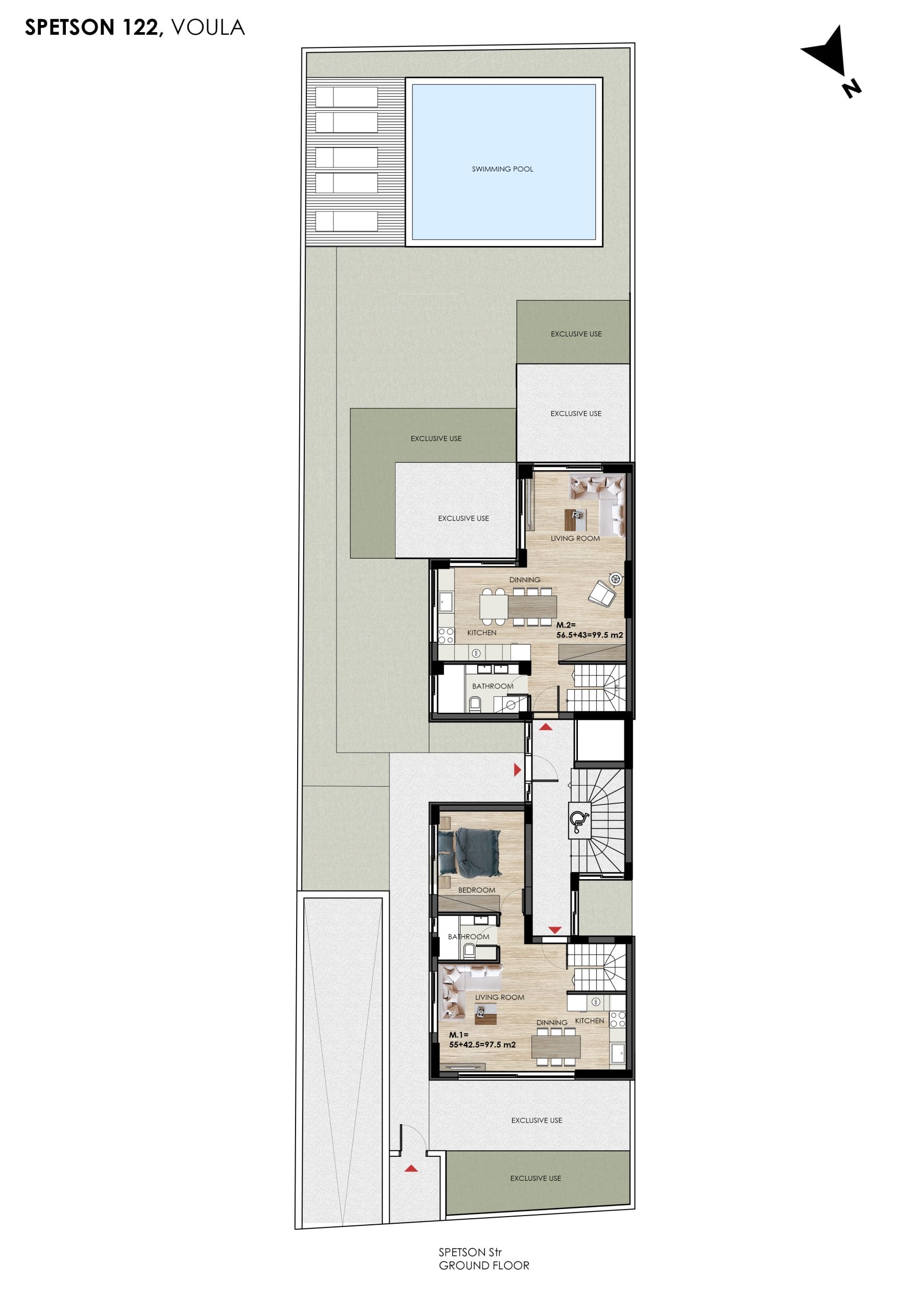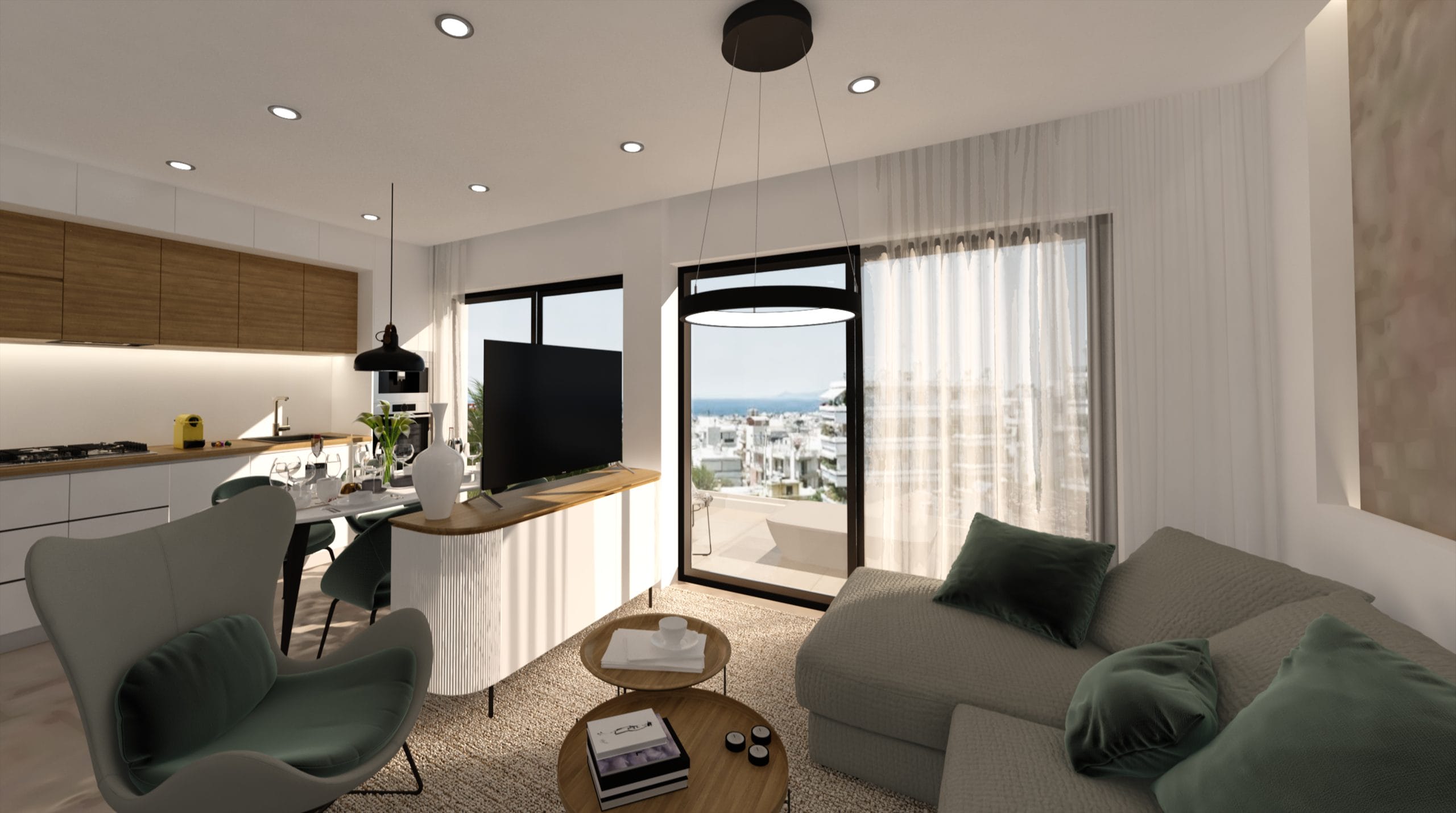 The project is located in the southern part of Athens close to the centre of Voula in a quiet residential area. The building extend into four floors offering two (one) bedroom apartments and four (two) bedroom maisonettes with a communal swimming pool based on the ground floor. It’s distinct and unique architectural design promotes the impression of harmony and balance due to its characteristic composition of cleverly positioned horizontal and vertical structural overlays creating a sense of serenity and calmness.