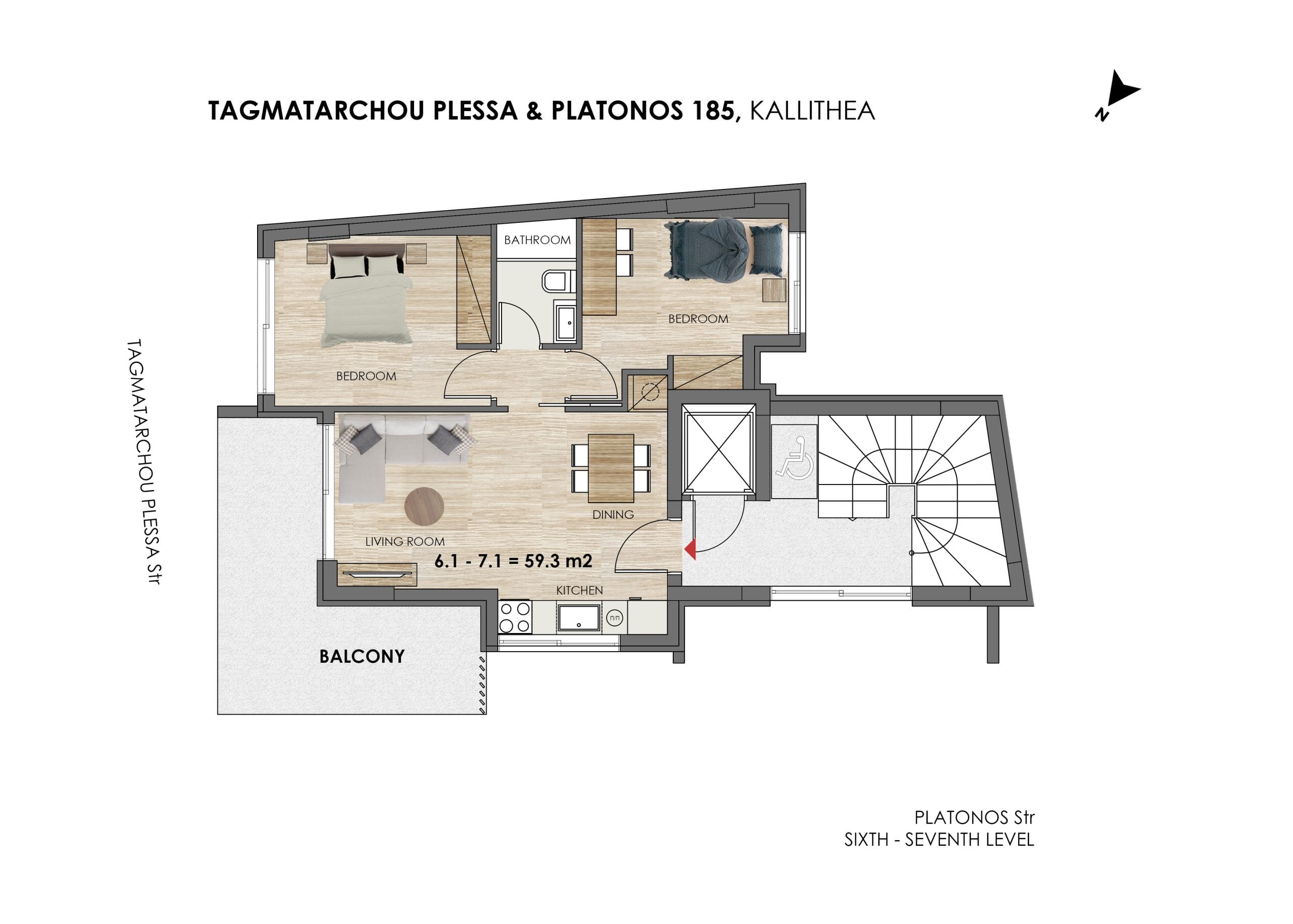 The project is located in the southern part of Athens close to Stavros Niarchos Foundation Centre in a quiet and sparsely populated area. The building extends into seven levels offering two (one) bedroom apartments and six (two) bedroom apartments.