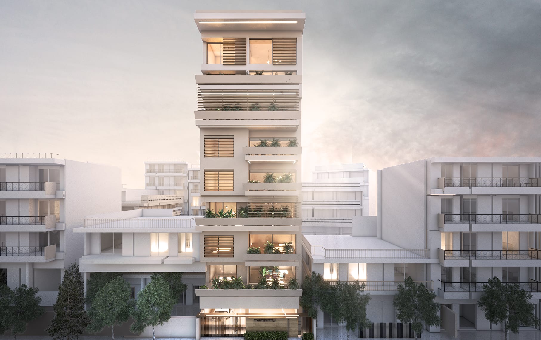 This project is located in the center of Athens in a quiet residential area. The building evolves into eight levels consisting of seven double-bedroom apartments.